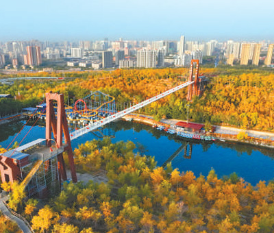 走进北京通州大运河森林公园,银杏树林、元宝枫、白蜡、黄栌等彩叶树种五彩斑斓,秋意盎然。大运河森林公园管理处副主任魏多介绍,森林公园里种植了许多乡土植物,它们节水、耐旱、好管理,特别皮实,一些开花品种可以从春开到秋。