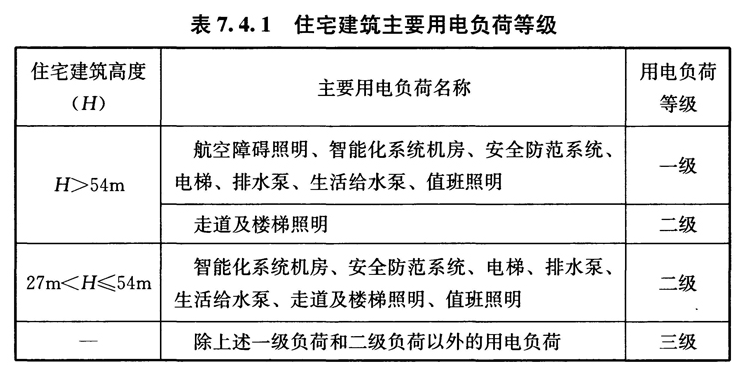 7.4.1 本条规定了住宅建筑用电负荷等级设置的基本要求。