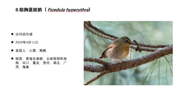 2025年名录新增加的8种野生动物全部为鸟类,其中,栗树鸭、黑海番鸭、蛎鹬、青藏沙鸻、白冠攀雀等5种鸟类均于河边或水库发现。荒漠林莺、棕胸蓝姬鹟、中华长尾雀等3种鸟类,经市园林绿化局组织专家鉴定后确认为北京新增加物种。