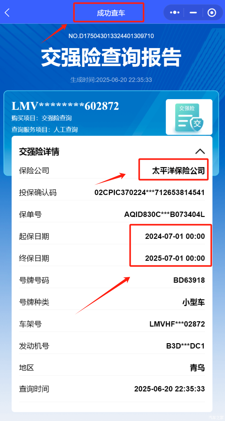请注意,通过交管12123 APP,目前只能查询到交强险的到期时间,而无法直接获取详细的保单信息,比如投保公司名称和具体的保单条款等。