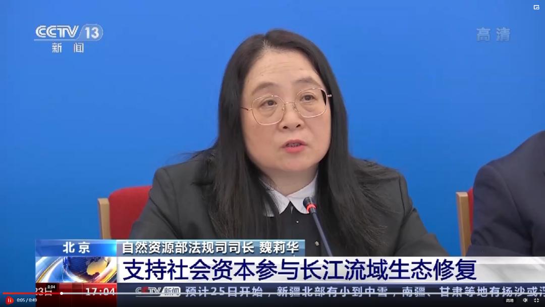 自然资源部法规司司长 魏莉华:(自然资源部)会同有关部门组织编制长江流域生态环境修复规划,按照规划组织实施好长江流域重大生态环境修复工程。因为生态修复是一个非常花钱的事,通过规划,要把国家的资金用在该用的地方。长江保护法对此也做出了明确的规定,要求自然资源主管部门要会同财政、生态环境保护等部门制定鼓励社会资金投入生态环境保护的制度。鼓励社会投资,我们就要找到营利点,即怎么样通过生态保护修复来挣钱,社会资金就可以很好的被引导进来进行生态修复。