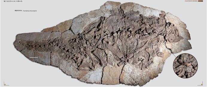 米,据科学家推断,它仅仅还是甲龙的幼年个体。由著名的古生物学家徐星亲自组织研究。它在辽西的出现,证明了辽西也有巨型恐龙,而且保存非常完整,十分罕见。