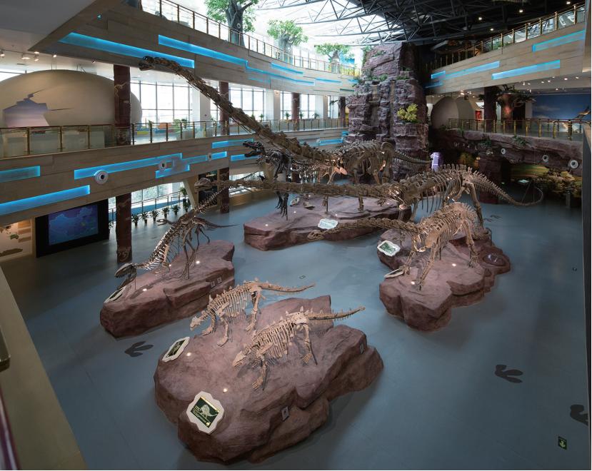 )恐龙厅。恐龙厅以“恐龙的世界”为主题,系统介绍恐龙的分类、时代、分布、演化以及兴衰史。用专题单元展区贯穿恐龙生存、进化、演变、灭绝的历史,并重点结合互动参与的形式,在互动展区设计一些与各类恐