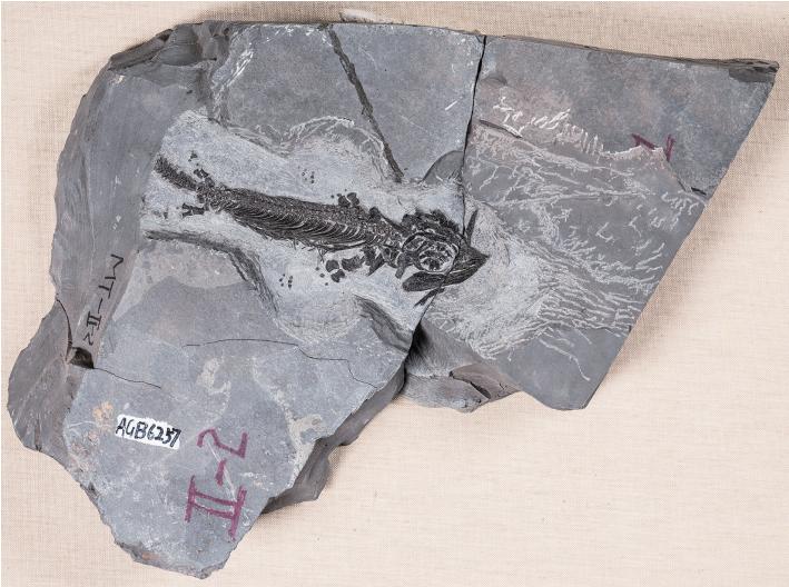 类化石——马家山龙鱼化石,且为模式标本。两件如此珍贵的化石同时保存在一块标本上实属罕见。