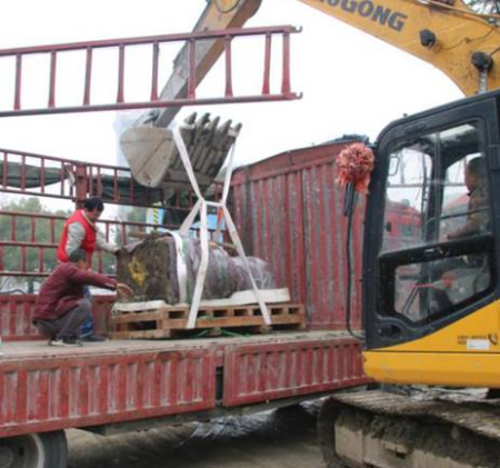 在安全运输方面,保护小组采用了“木托板+棉毯+海绵软垫+软吊带”的包裹方式,使用“叉车+吊车+大货车+人工管护”的连贯操作,确保了石狮在转运过程中的安全。