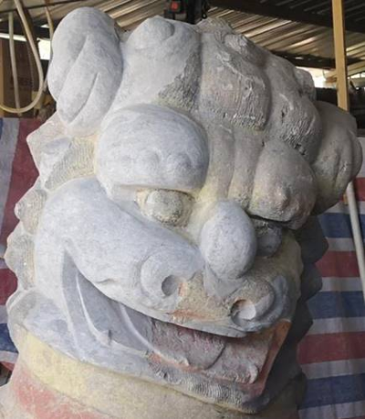 然后,以“远看一致、近观有别”为原则,寻找到原石狮类似的石料,运用大型三维电脑石材雕刻机,雕刻出雌石狮脸部缺失的部分,最后进行黏结,使雌石狮脸部复原。
