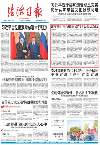 四十载砥砺奋进,法治薪火相传;九万里风鹏正举,普法新篇待书。站在“十五五”即将开局的历史新起点,我们肩负着承前启后、筑基拓新的时代使命。让我们更加紧密地团结在以习近平同志为核心的党中央周围,以习近平法治思想为指引,认真学习贯彻党的二十届四中全会精神,全面贯彻落实法治宣传教育法,推动法治精神深入人心,让尊法学法守法用法在全社会蔚然成风,夯实全面依法治国的社会基础,推动建设更高水平的社会主义法治国家。