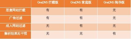 OneDNS家庭版和纯净版,则分别是以拦截版为基础做了加减法。家庭版增加了成人网站的过滤,建议家中有小孩的朋友启用。纯净版去掉了恶意网站拦截和公广告过滤功能,更适合追求纯净解析的人群尝试。当然,受法规约束,只要是国内正规合法运营的DNS都是不可能做到解析源头绝对无污染的,这点大家心里要有数哦。