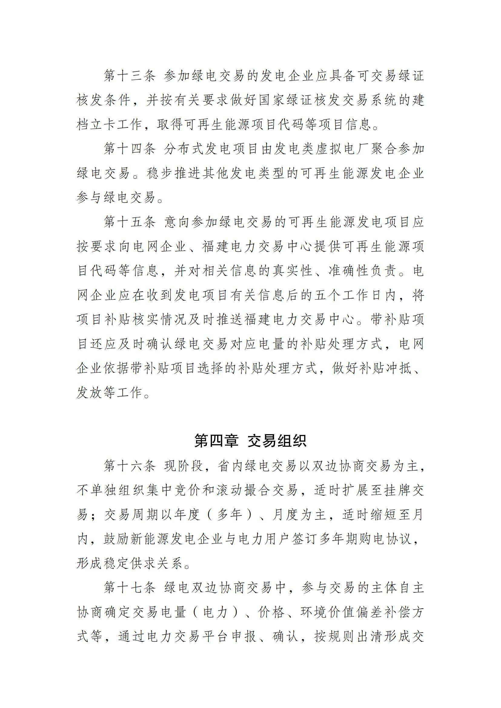 6月20日,福建电力交易中心印发《福建省绿色电力交易实施细则 (2025年修订版)》。根据省内电力市场建设实际,现阶段参与绿电交易的发电企业以风电(包括陆上风电、海上风电)、光伏发电项目为主,主要包括以下几类:未纳入国家可再生能源补贴范围内的项目;纳入国家可再生能源补贴范围内但补贴到期的项目,包括超过全生命周期合理利用小时数之外的项目,以及自并网之日起满20年的项目;纳入国家可再生能源补贴范围内,但主动放弃补贴的项目或参与绿电交易所获高于燃煤基准电价的溢价收益等额冲抵补贴的项目。
