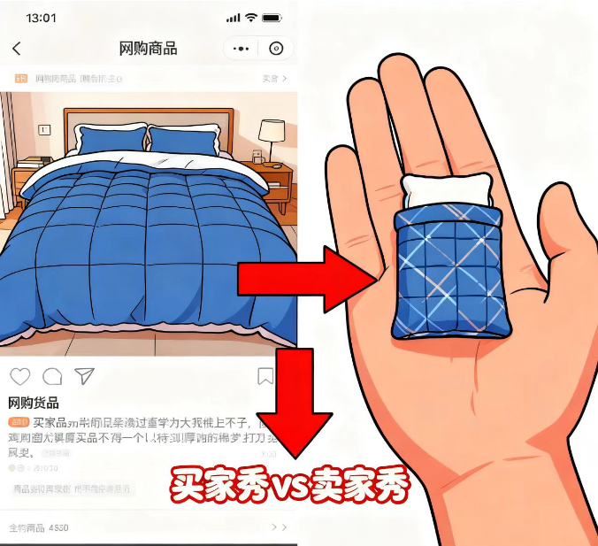 小A在网上买了一床棉被,到货之后发现只有巴掌大,与宣传图册毫不相关,该怎么维权?