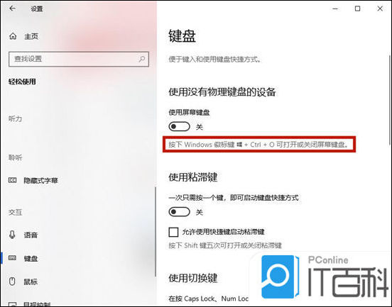 4. 当然了我们也可以通过“win+ctrl+o”键快速打开屏幕键盘。