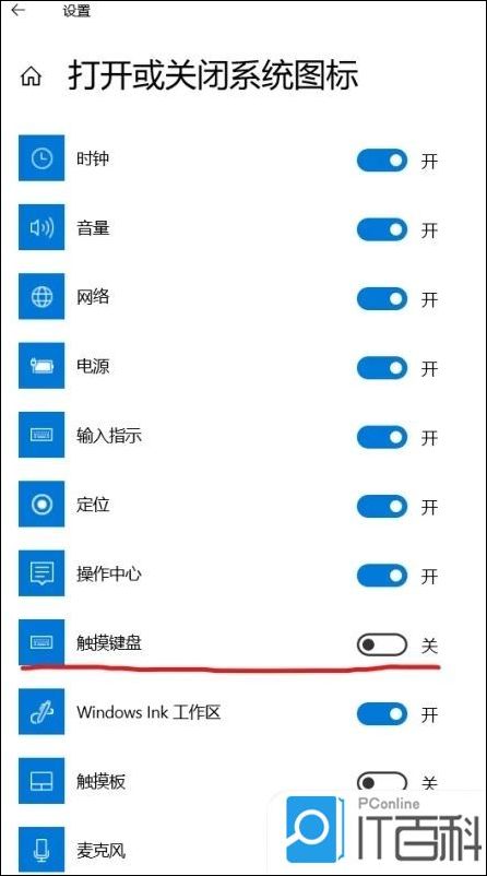 3. 点击“显示触摸键盘按钮”选项后,右下角出现了一个键盘的图标;