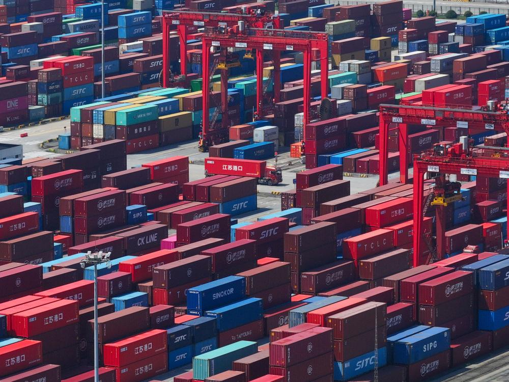 这是2025年9月16日拍摄的江苏太仓港集装箱堆场(无人机照片)。新华社记者 郭洁宇 摄