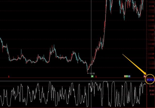 把指标加载到副图进行验证,可以看到JD的最大值基本上在80多,确实如我们所料。