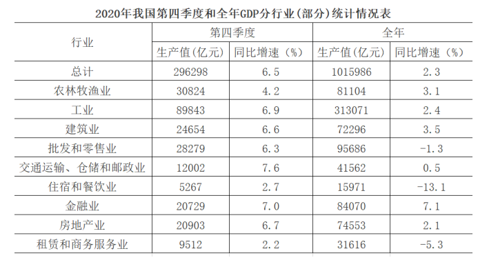(2021广西)上表中,2020年前三季度生产值同比增速低于全年的行业有( )个。