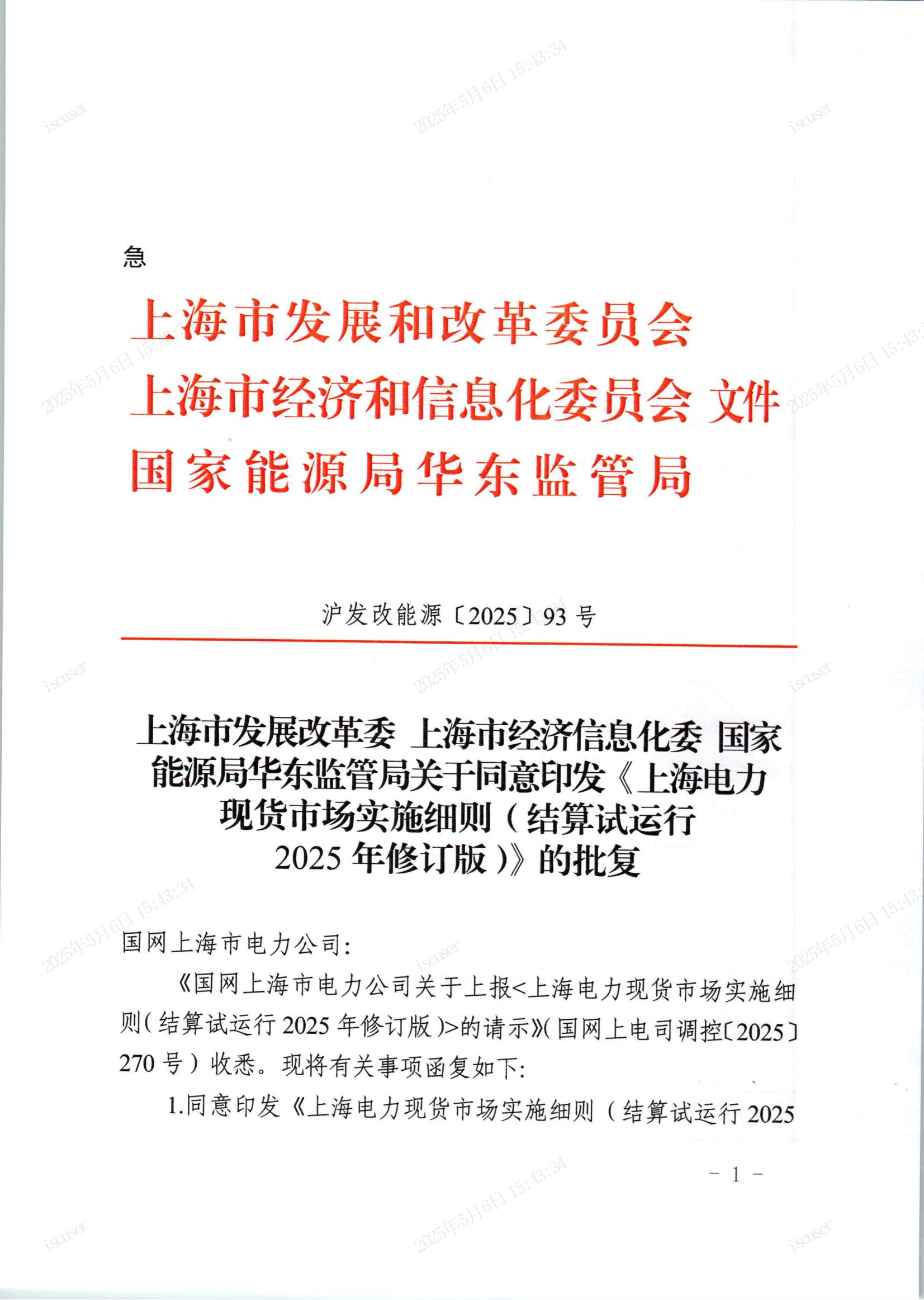 北极星售电网获悉,上海电力交易中心转发上海电力现货市场第三次结算试运行工作方案、上海电力现货市场实施细则(结算试运行2025年修订版)的通知。