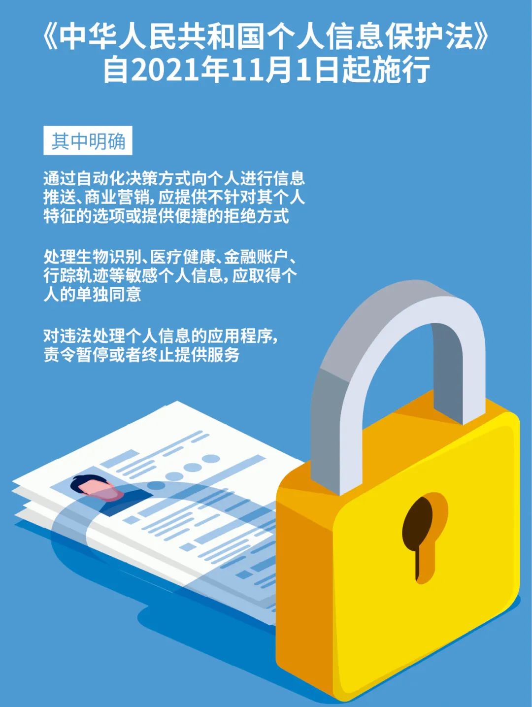 《中华人民共和国个人信息保护法》自2021年11月1日起施行。
