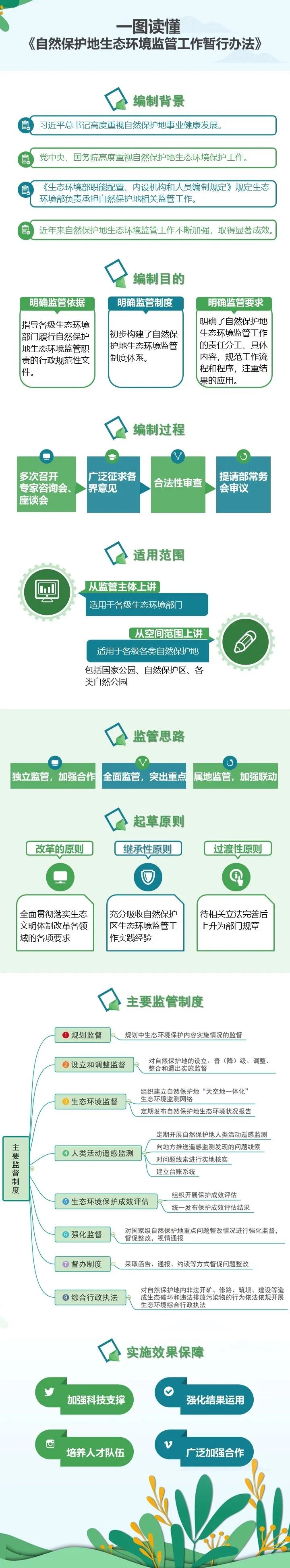 党中央、国务院高度重视自然保护地生态环境保护工作,先后印发《建立国家公园体制总体方案》《关于建立以国家公园为主体的自然保护地体系的指导意见》等文件,要求实行最严格的生态环境保护制度,强化自然保护地监测、评估、考核、执法、监督等,形成一整套体系完善、监管有力的监督管理制度。