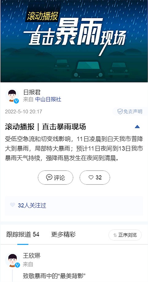 2022年,中山日报全媒体平台推出“中山榜样”“中山好人”融媒体产品154个(篇),总阅读量655万+。