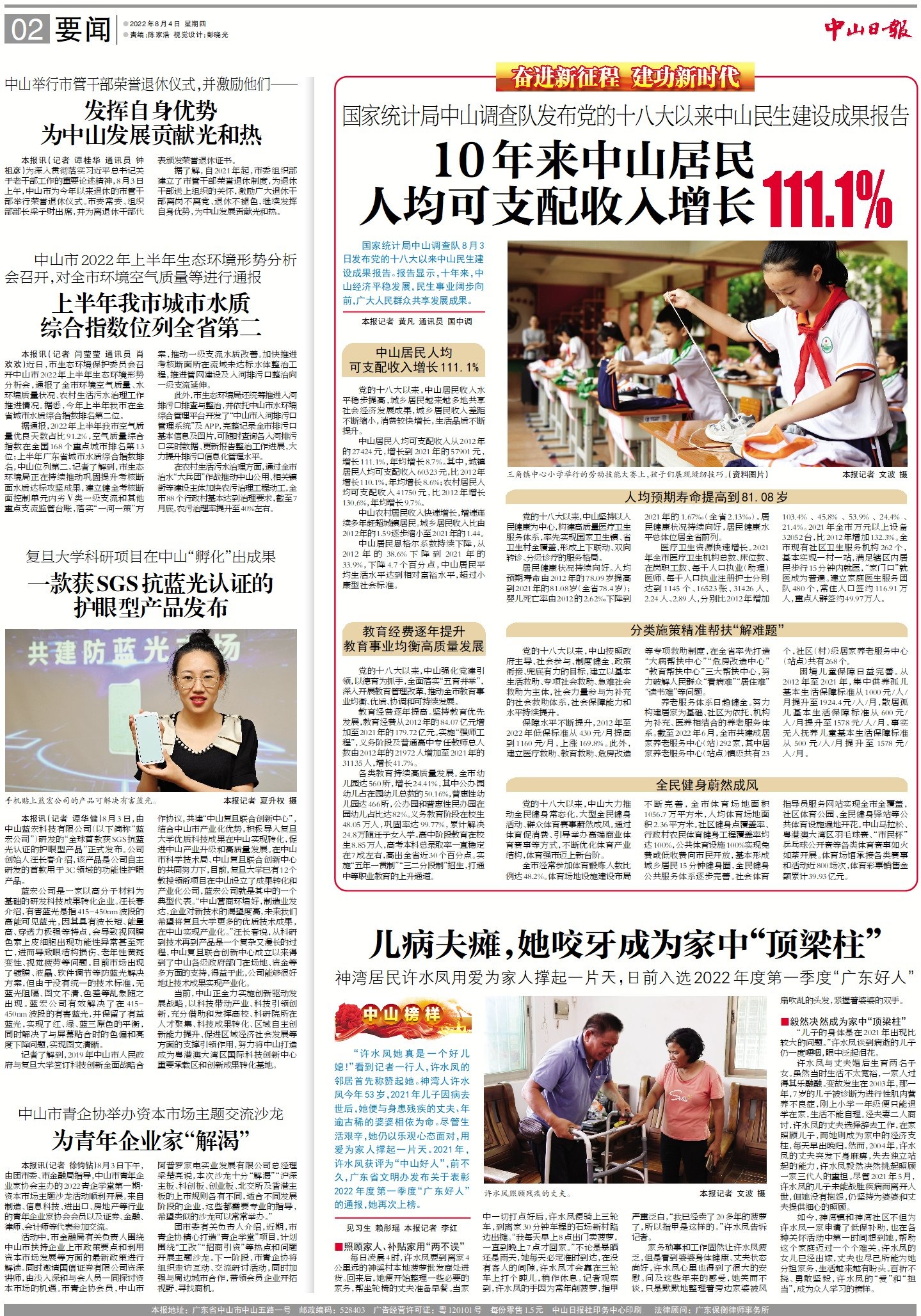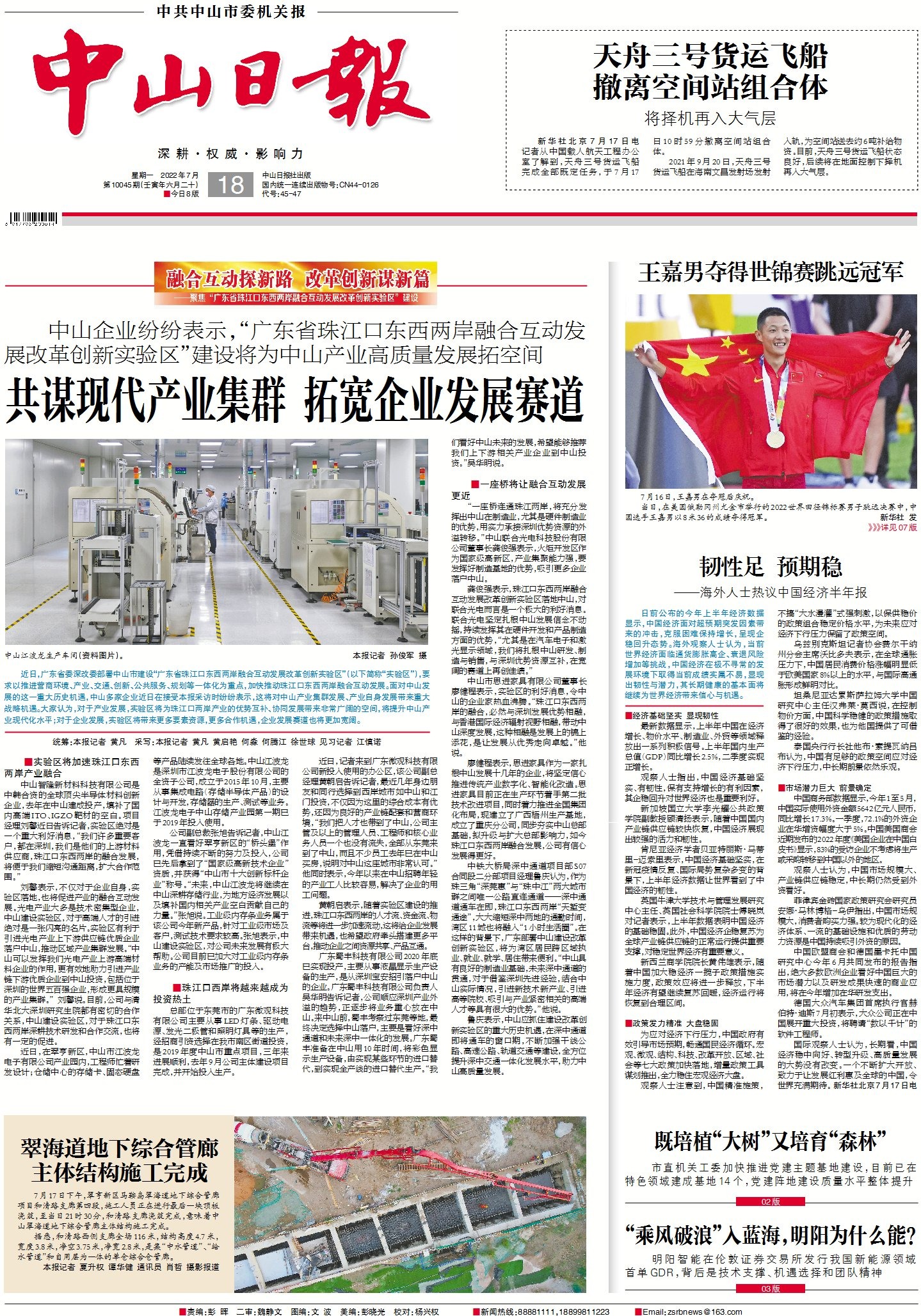 2022年,中山日报社不断加强科技创新的报道力度,重点宣传企业利用科技技术创新生产经营、科技创新驱动经济社会发展的典型案例,同时加大科技先进人物的报道力度。