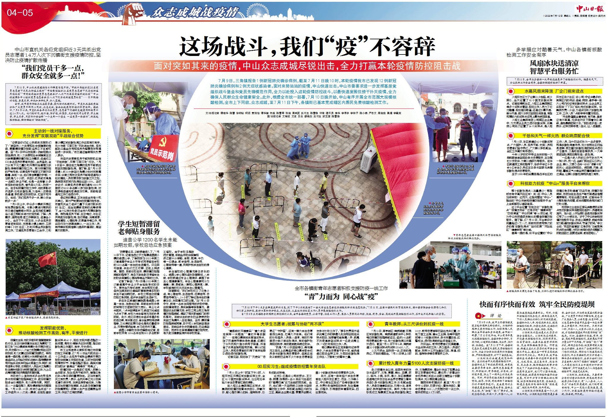中山日报社推出“融合互动探新路 改革创新谋新篇”“工改拓路 共赢新局”“众志成城战疫情”等20多个专版专栏,表达建设广东省珠江口东西两岸融合互动发展改革创新实验区的决心,反映中山推动高质量发展的创新实践和典型经验,聚焦全民抗击疫情的工作场景,积极引导社会热点。