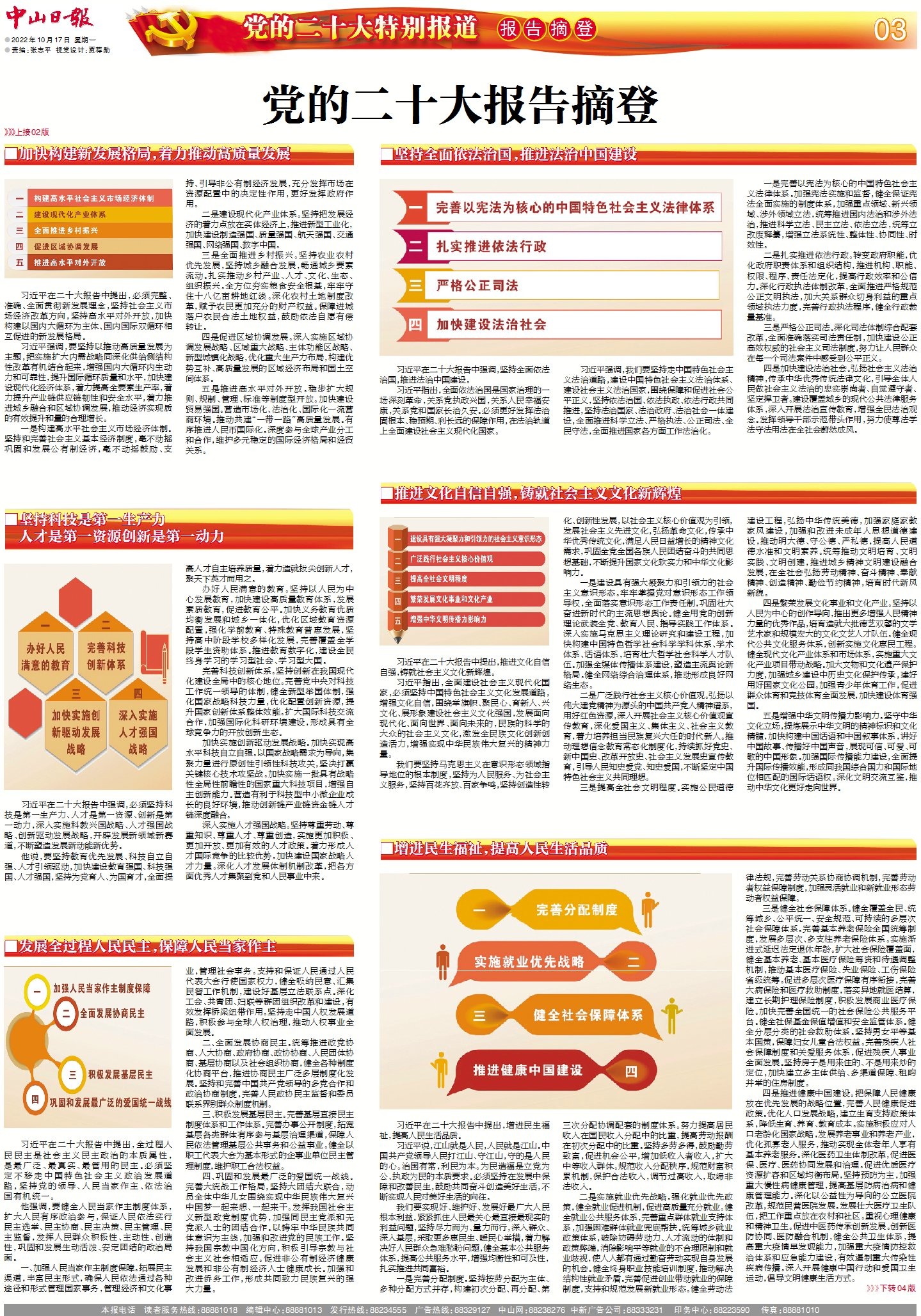 2022年,中山日报社坚决贯彻落实党中央的决策部署和省委、市委的工作要求,围绕中心、服务大局,不断提高政治判断力、政治领悟力、政治执行力,聚焦重要会议、重大活动、重点任务,坚持全媒体发力,持续深入学习宣传习近平新时代中国特色社会主义思想,做好习近平总书记重要活动、重要会议、重要讲话的宣传报道,把握中央、省委、市委的全会,全国、全省和中山“两会”,省第十三次党代会、市第十五次党代会、党的二十大召开等重大节点,采用行进式、互动式、调研蹲点式等采访方式,聚焦党的二十大、“工改”治水、数字化转型、文化兴城等重大主题主线,策划推出“奋进新征程 建功新时代”“党的二十大特别报道”“转作风 再出发 开新局”“争当改革攻坚排头兵”“美丽中山在行动”“中山大兵团治水,出发!”“中山智能化转型标杆”“两稳一保”“共谱文化兴城华章”等30多个专题专栏报道,全方位实施融合采编、立体传播,唱响主旋律。