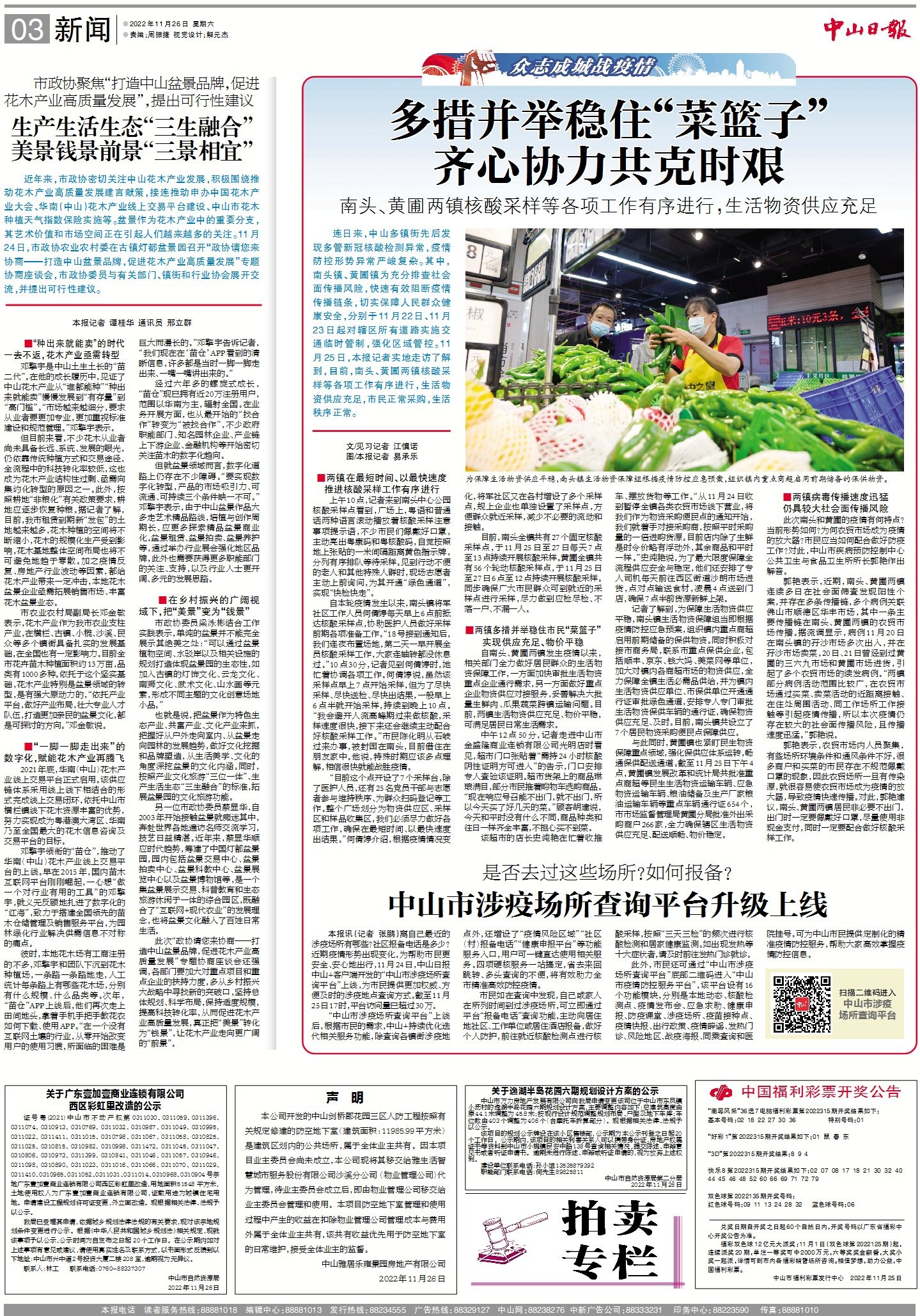 中山日报还提供各类生活资讯服务,及时在版面上提前发布道路交通信息为市民出行提供指引,及时在全媒体平台提醒市民注意绕行,在“中山+”客户端设置疫情防控服务平台入口等。如《这份元宵出行攻略请收好》《避开拥堵,105国道中山段绕行方案来了》,除报道外还制作图表,方便读者阅读。同时,及时报道政府出台的一些政策法规,多从服务读者的角度贴近市民进行解读,让读者了解跟切身利益相关的内容。
