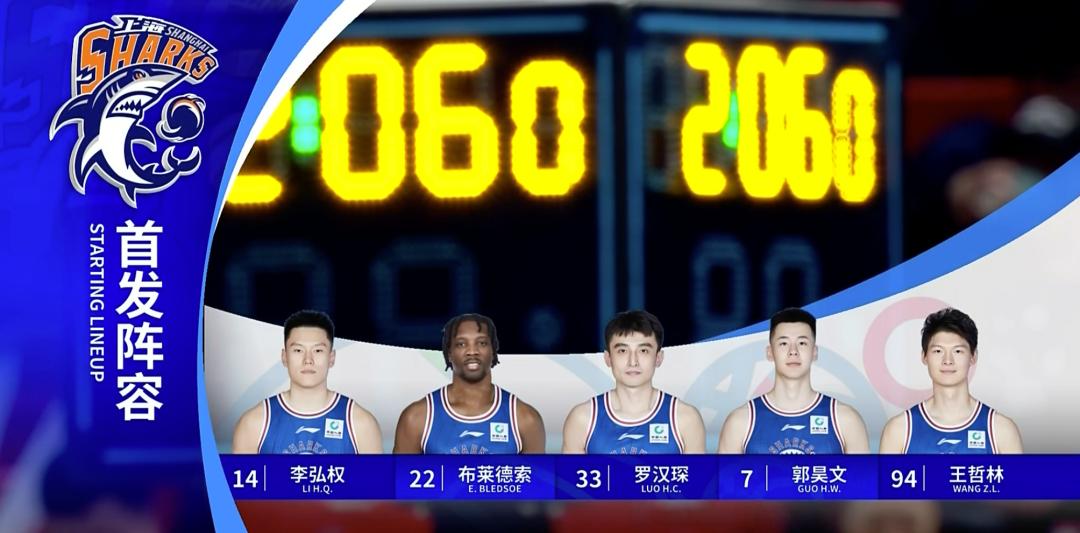 上海队首发名单方面,刘鹏遣出李弘权、布莱德索、罗汉琛、郭昊文和王哲林。