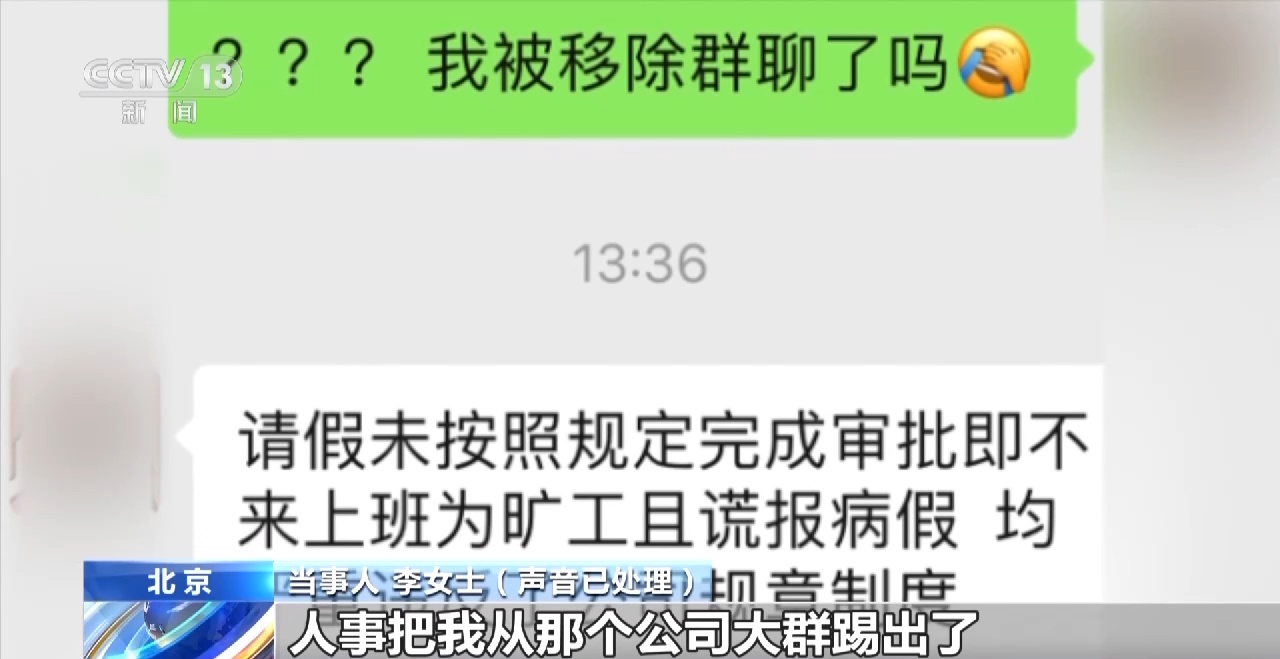 李女士说,她在病假期间,也和公司方一直有工作方面的沟通交流,然而没过几天,她发现自己被移出了公司的微信群。