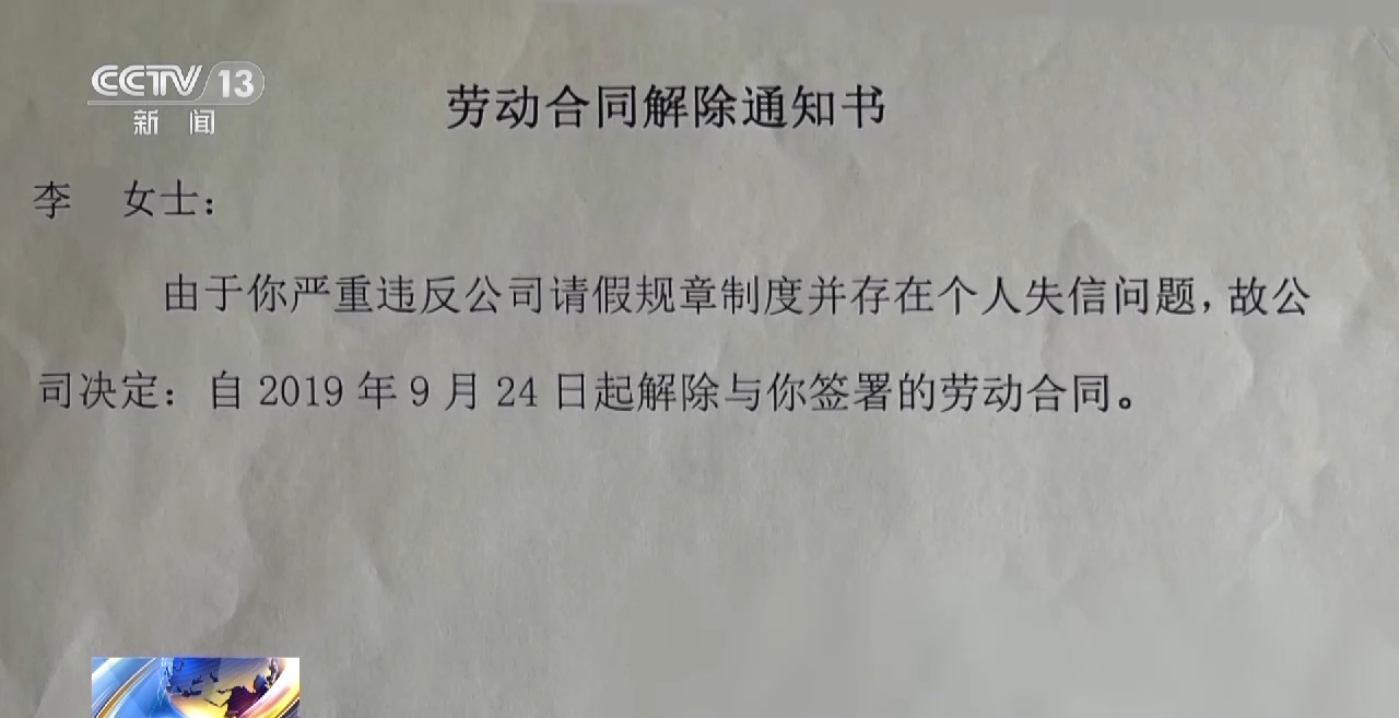 北京市第三中级人民法院立案庭副庭长 龚勇超:她主张我已经按照公司的要求提交了请假申请,同时我也交了诊断证明,我这请假程序是合法的。同时,我还通过微信告知了你我要请假,你没说不行,这种情况下我去休假去了,我的行为没有任何不妥之处。