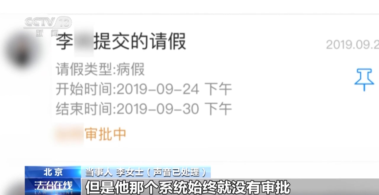 北京市第三中级人民法院立案庭副庭长 龚勇超:根据这个案件的情况来看,李女士已经按照公司的请假流程提交了申请,提交了诊断证明。公司对于李女士怀孕以及请病假的情况是明知的,而一直没有及时处理李女士的请假申请,他自身就存在一定的过错。