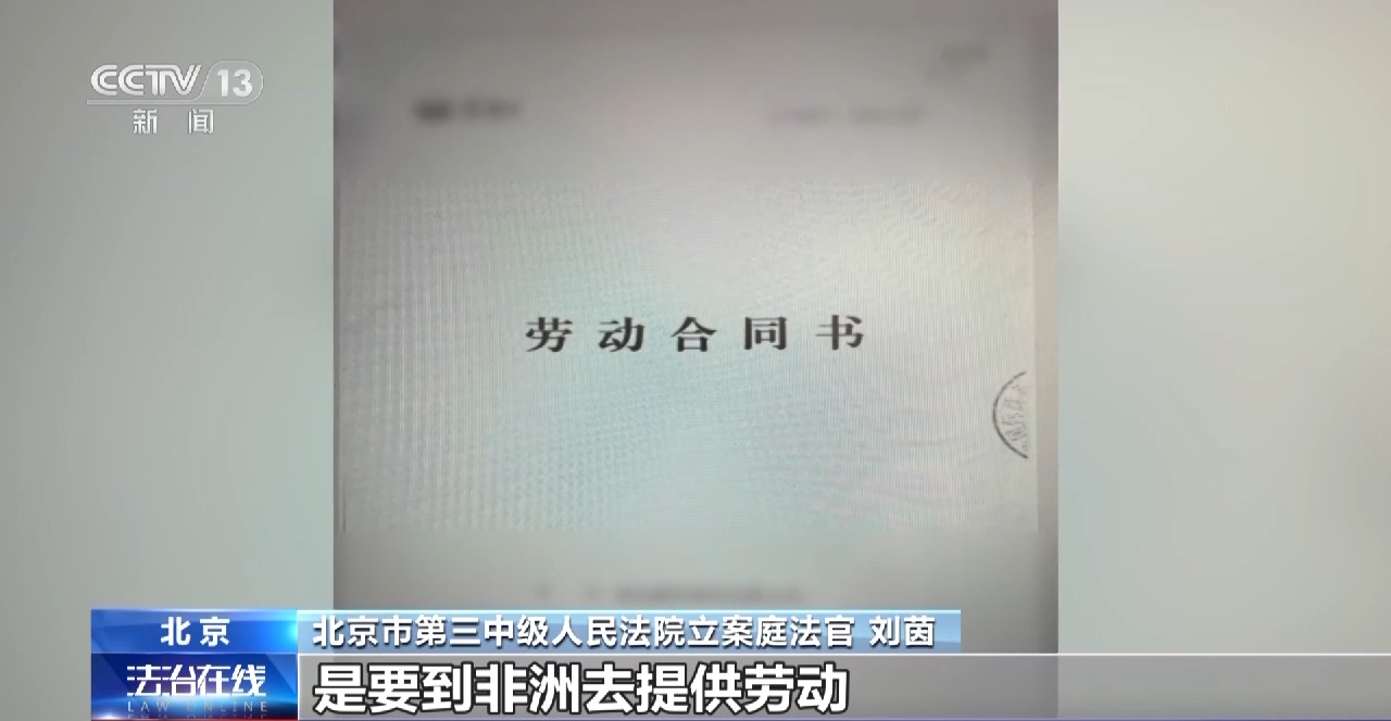 北京市第三中级人民法院立案庭法官 刘茵:劳动者是2019年入职到这家公司的,双方签订劳动合同的时候,是明确约定了工作地点是在非洲的一个地区,特定的公司名下的一个项目。