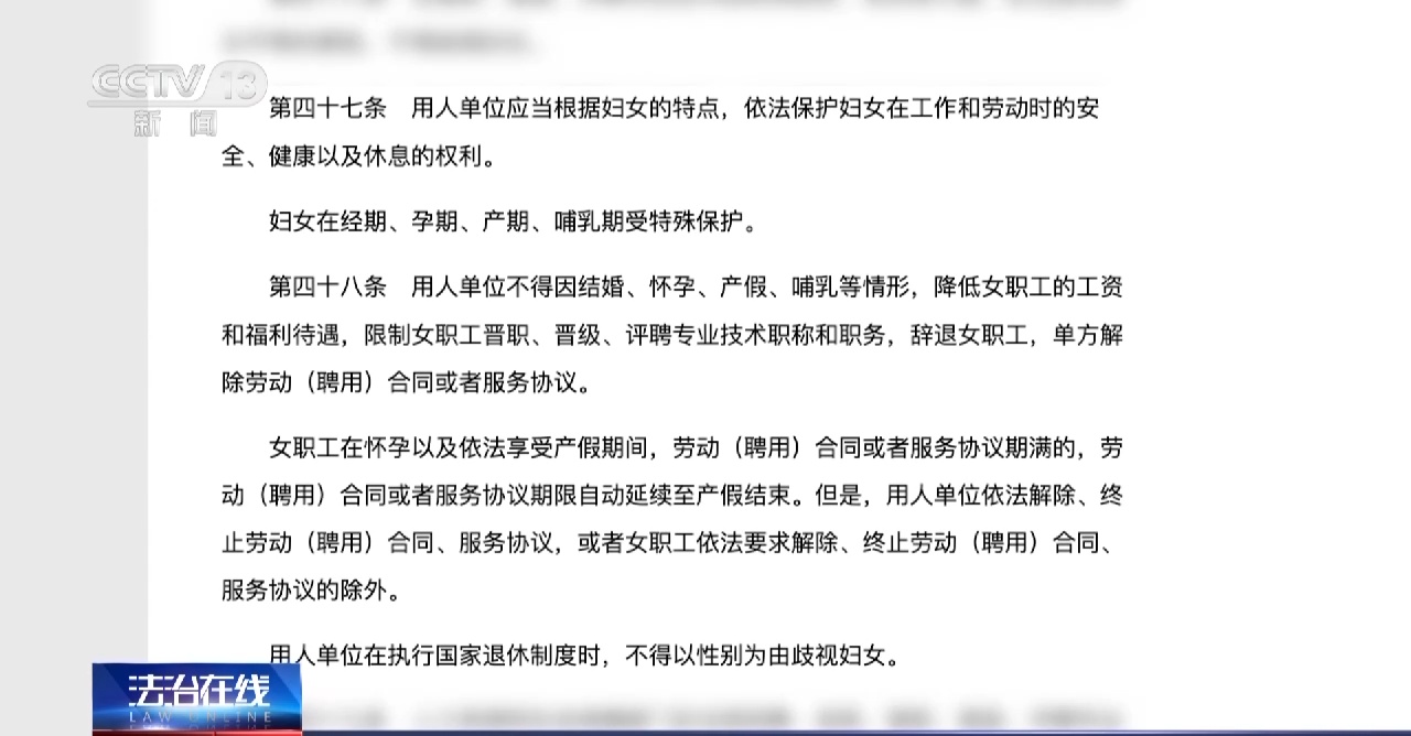 北京市第三中级人民法院立案庭副庭长 龚勇超:首先是在个案中去保护女职工的合法权益。女职工她有一些特殊的需求,用人单位应当去了解和理解。另外,我们也通过一个一个典型案例去向社会公众去进行宣传,告知他们哪些行为是合法的,哪些行为是不合法的,避免用人单位再犯同样的错误。
