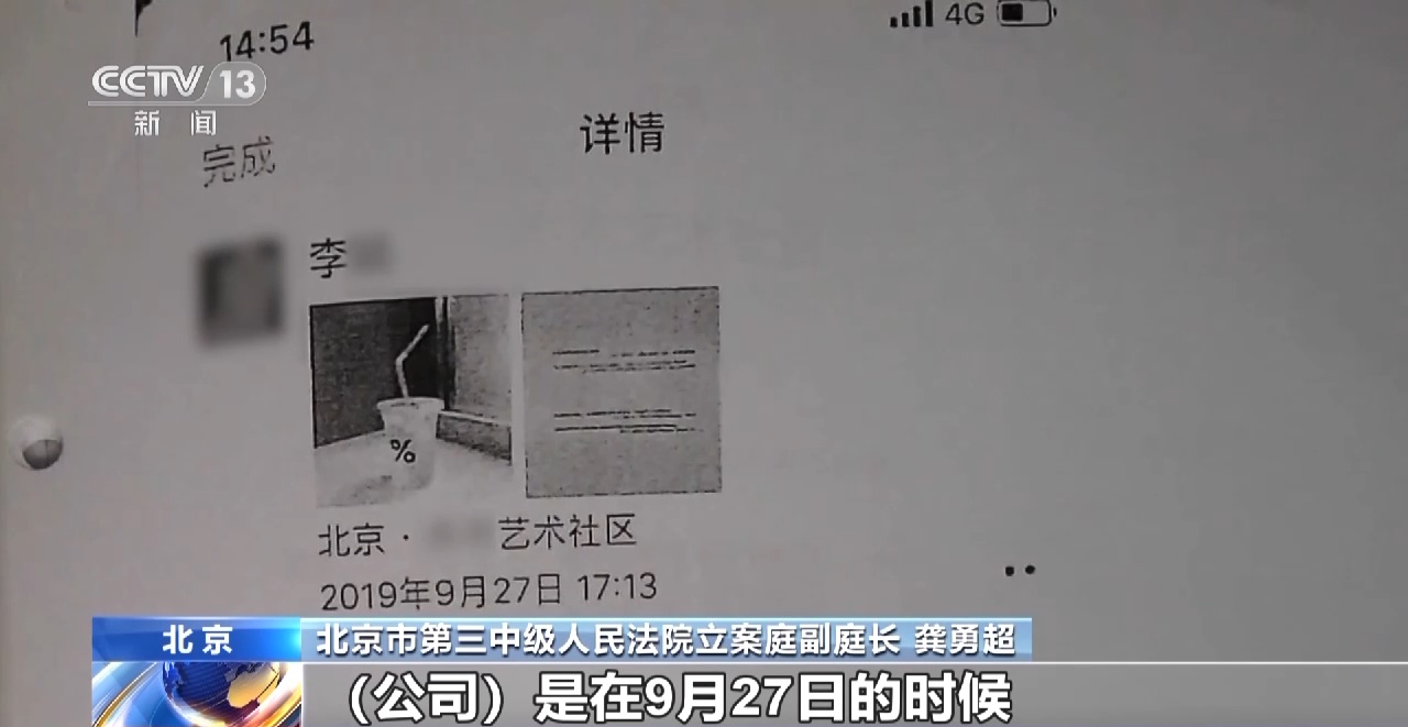 北京市第三中级人民法院立案庭副庭长 龚勇超:公司是在9月27日的时候根据她的微信朋友圈,发现这个劳动者她前往了一个艺术社区,去那里游玩。公司认为,这个艺术社区离你家有7到9公里,还挺远的,那你这种行为,是不诚信的行为,存在个人失信问题。