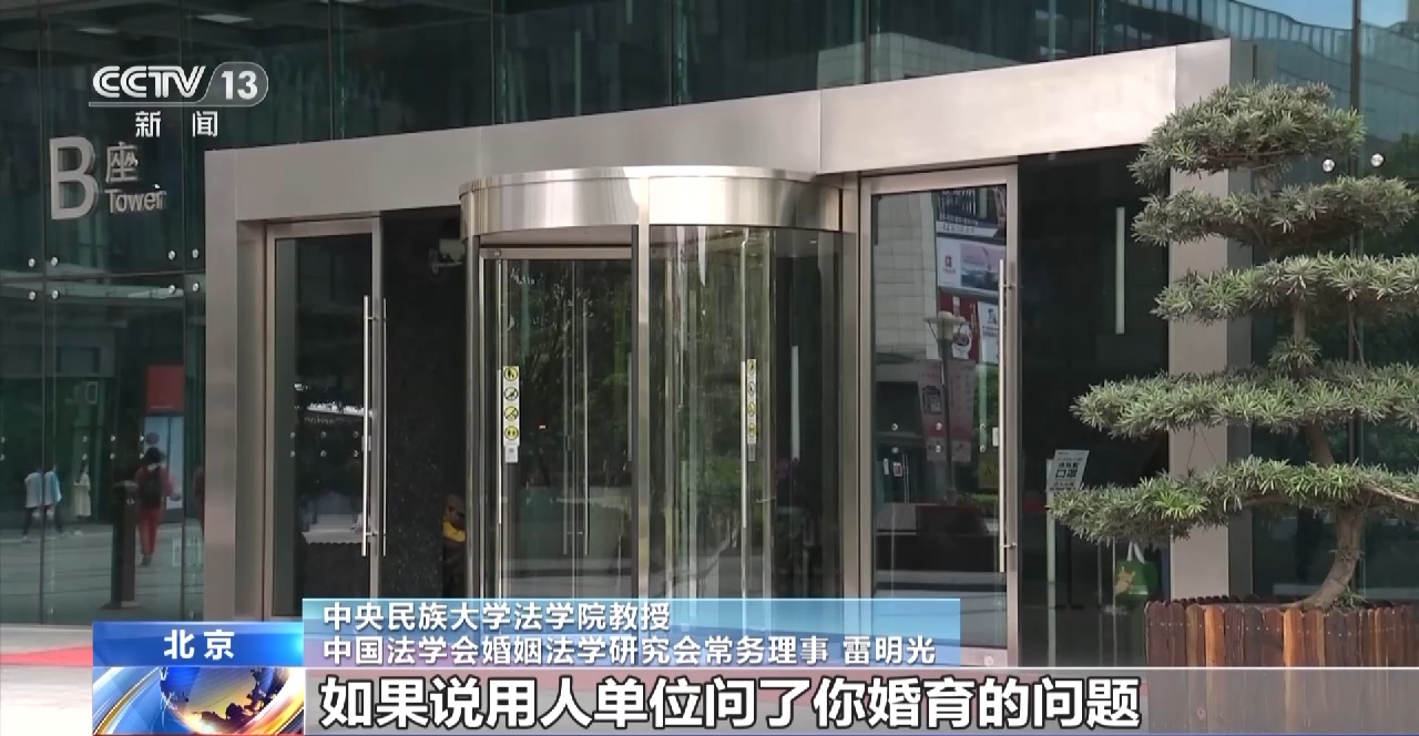 中央民族大学法学院教授、中国法学会婚姻法学研究会常务理事 雷明光:在求职的时候,如果说用人单位问了你婚育的问题,你可以不说。如果说你怀孕了,或者是生孩子等等,单位如果给你穿小鞋,或者以此不提拔你,或者给你降低工资甚至辞退你,那这时候你一定要拿起法律的武器,维护你的权益。