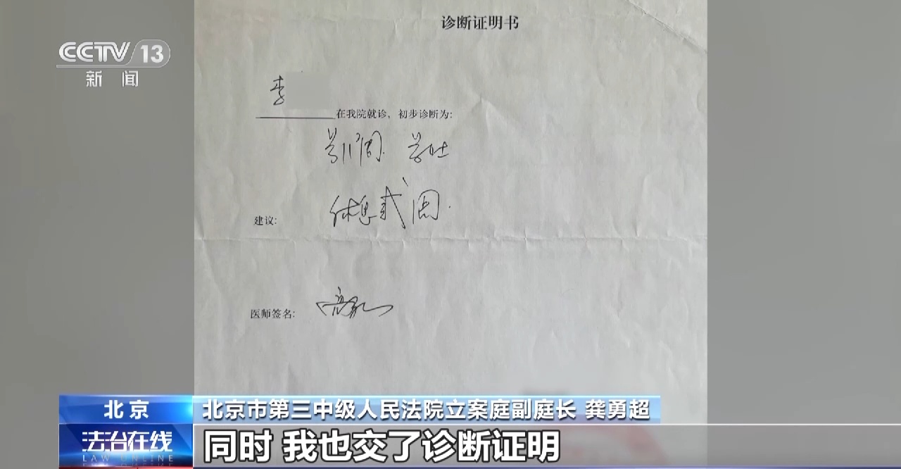 北京市第三中级人民法院立案庭副庭长 龚勇超:李女士这一方就认为,这家医院是一个正规的医院,它也不存在开具虚假诊断证明的行为。而且她的妊娠反应是孕吐,完全没有必要到一家三甲医院去看这个病,让她出具这个证明,这是给她增加了负担。