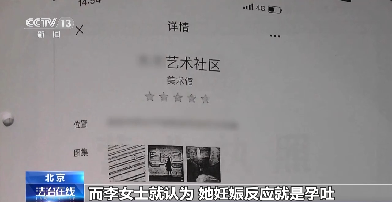 北京市第三中级人民法院立案庭副庭长 龚勇超:而李女士就认为她妊娠反应就是孕吐,她去这个艺术社区是去透透气,去散散心,这两者并不冲突,她虽然请假了,但不能因为这个就限制她的人身自由。