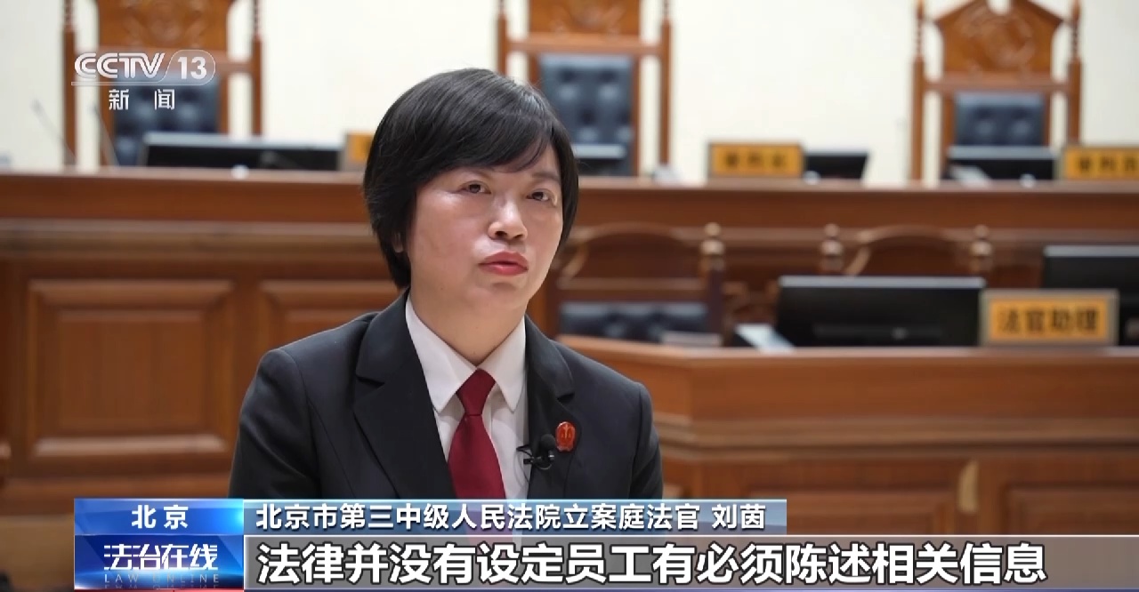 北京市第三中级人民法院立案庭法官 刘茵:关于个人信息,尤其是关于怀孕信息的披露,法律并没有设定员工有必须陈述相关信息和主动陈述相关信息的一个义务。单位以她没有如实陈述、主动报备怀孕信息为由作为解除劳动合同的一个事由,认为她隐瞒信息办理入职,我们觉得是没有任何事实和法律依据的。