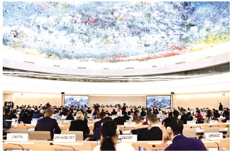 图为1月23日在瑞士日内瓦拍摄的联合国人权理事会第四轮国别人权审议现场。 新华社记者 连漪 摄