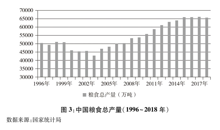 图3:中国粮食总产量(1996~2018年)(新华社发)