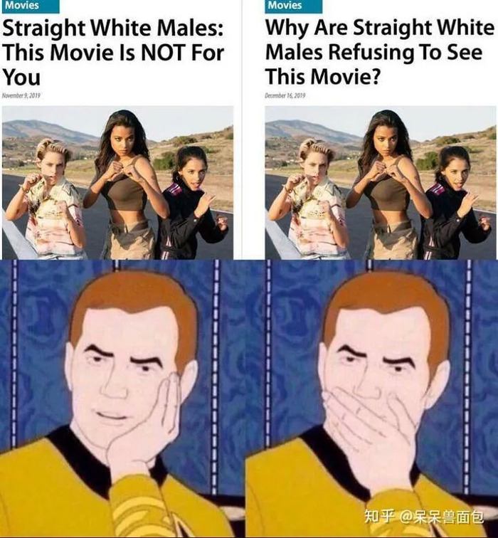 更分裂的反倒是支持女性电影的女权们,前脚说完电影不是拍给你们男人看的,后脚就怪男人为什么不去看电影。