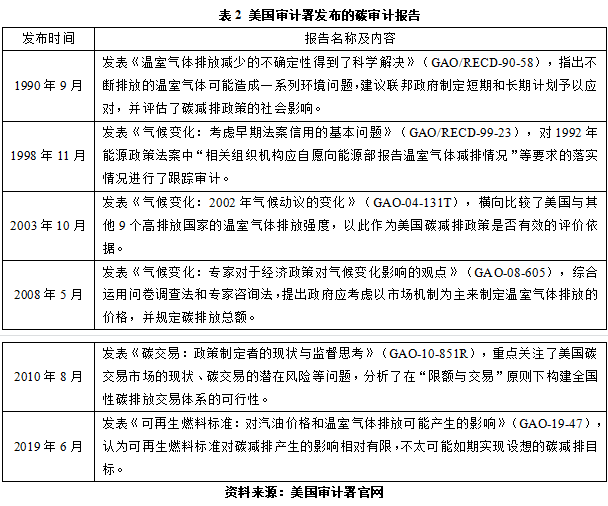 自20世纪90年代至今,美国审计署始终将碳审计视为一项担负历史责任的长期工程,就碳排放等重点气候问题展开了持续、连贯的审计工作,形成了大量内容详实、条理清晰的审计报告。梳理其发布的相关碳审计报告,不难发现,美国审计署不仅对各级政府的气候战略计划、职能部门的碳减排专项政策进行事前、事中、事后审计,也对碳排放政策的预期目标进行评估审计,从而预测并及时发现有关政策和计划存在的不足,提出行之有效的改进建议,使其达成更为理想的实现效果。