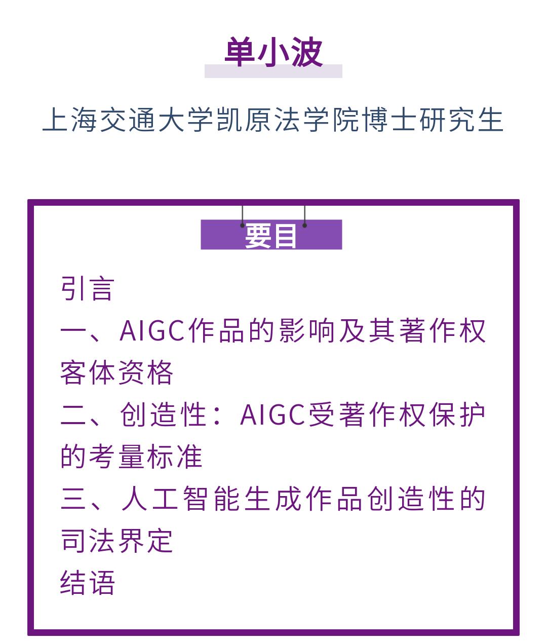 原标题:《单小波|生成式人工智能作品的著作权认定》