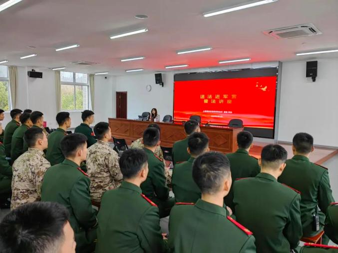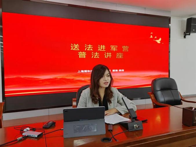 在宣讲活动中,上海博和汉商律师事务所解琳律师从军人地位和权益保障法出发,向武警官兵宣讲了我国对军人合法权益保障的多层次法律体系构建,介绍了军人在婚恋、合法财产等方面应享有的各项权利,指导官兵运用法律盾牌和法律武器维护自己的合法权益。解琳律师还结合当今网络社会所面临的风险与挑战,向官兵介绍了新型网络诈骗案例,以及网络不当不法言论应承担的法律责任。通过以案说法,为官兵防范网络诈骗及网络不当言论提供警示及建议。