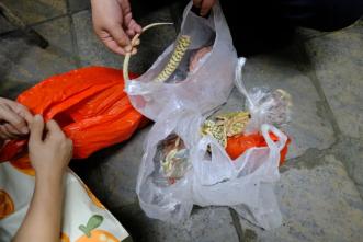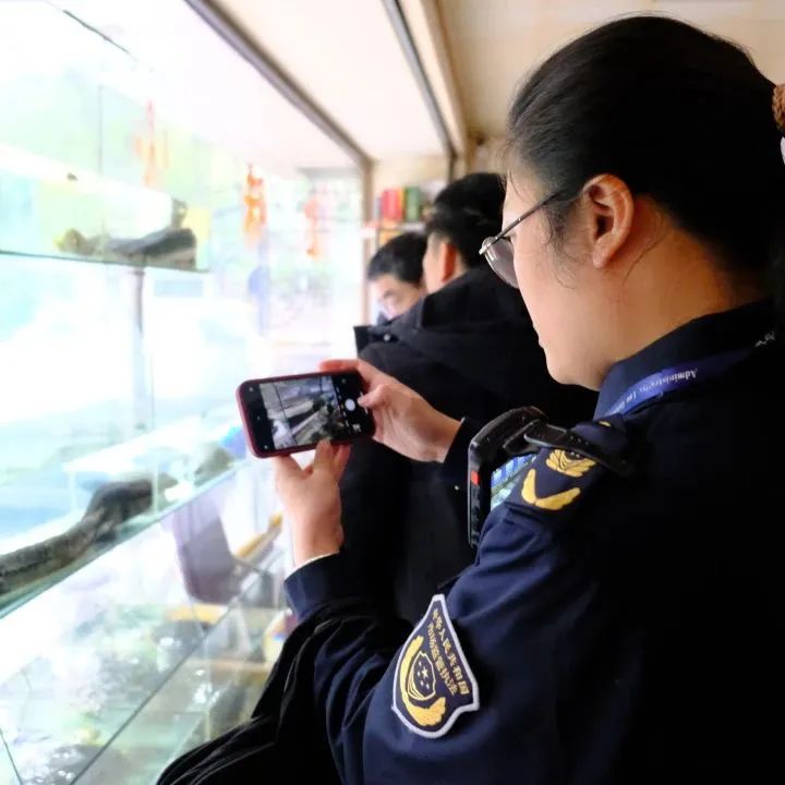 联合执法行动中,执法人员前往厦门多个餐饮场所开展突击检查,重点检查是否存在非法出售、收购、食用野生动植物及其制品等违法行为,每到一处查看其是否存在非法经营、运输野生动植物及其制品行为,对其销售、食用的畜禽制品的供货资质、来源范围进行排查比对。