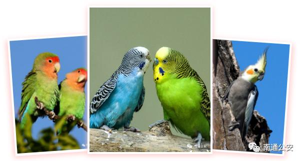 (桃脸牡丹鹦鹉、虎皮鹦鹉和鸡尾鹦鹉)