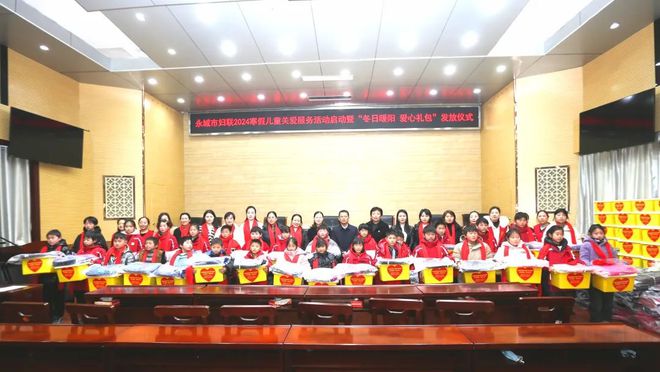 1月26日,永城市妇联2024寒假儿童关爱服务活动启动暨“冬日暖阳 爱心礼包”发放仪式,给爱心爸爸、爱心妈妈代表颁发了荣誉证书,为受捐儿童代表发放了大礼包,本次活动共捐赠大礼包200个。