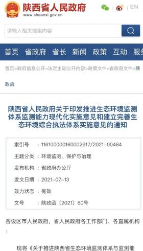 陕西省将《指导意见》的落实与生态环境综合执法体系建设紧密结合,省生态环境厅主要领导亲自安排部署,多方面听取意见建议,多次召开会议研究,把《指导意见》要求的多项工作措施纳入建立和完善生态环境综合执法体系的指导文件中。经陕西省人民政府第13 次常务会议审议通过,省政府印发《关于建立和完善生态环境综合执法体系的实施意见》(以下简称《实施意见》)作为落实《指导意见》的具体实施文件。