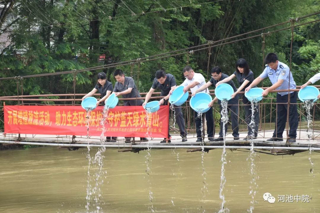 在“6.5”世界环境宣传日来临之际,凤山法院开展人工增殖放流活动,投放鱼苗共计6000尾,助力生态环境保护。
