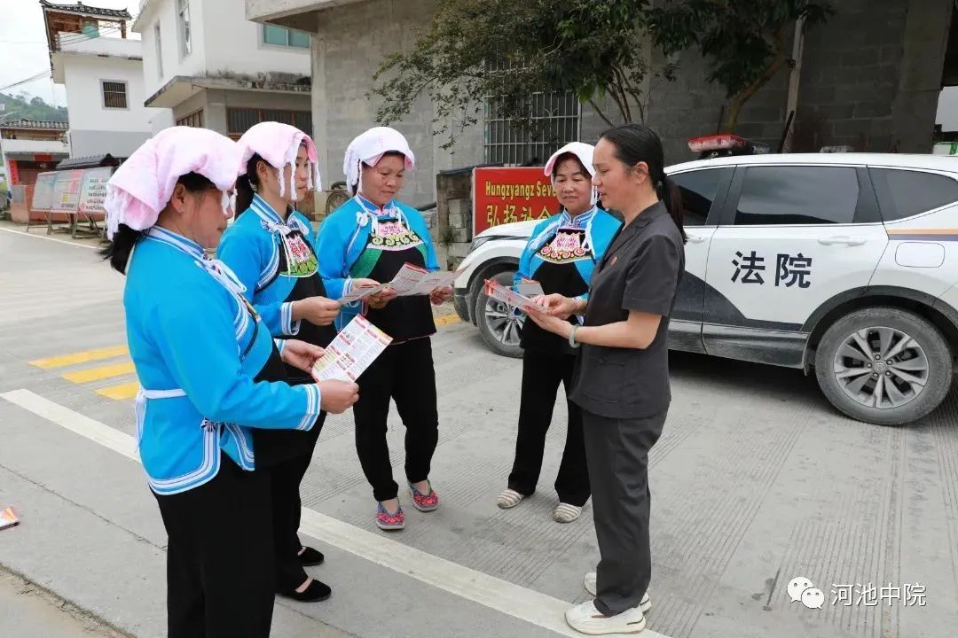6月2日上午,天峨法院干警到六排镇云榜村开展“民族团结一家亲 同心共建美家园”主题法治宣传活动。